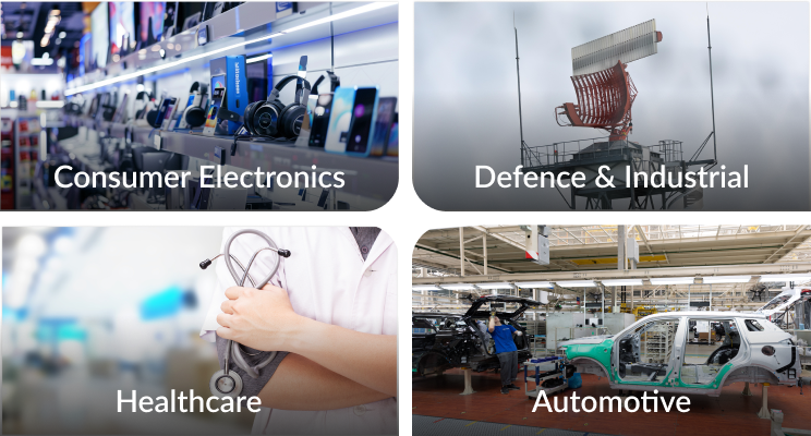 Serving Consumer Electronics, Automotive, Healthcare, and Defence sectors.